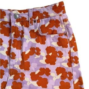 Zara The 90's Short Poppy Flower Print High Waist Raw Hem Cutoff Denim Size 4