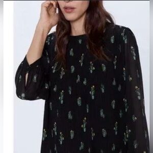 Zara The Annie Black Long Sleeve Cactus Print Mini Dress M