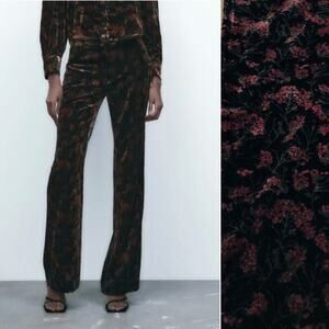 Zara The Charlotte Pant Black Floral Velvet *Size Large