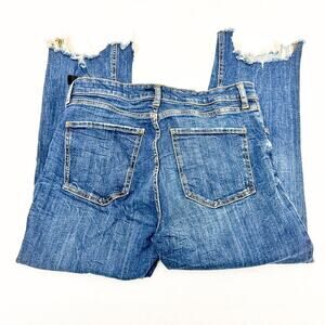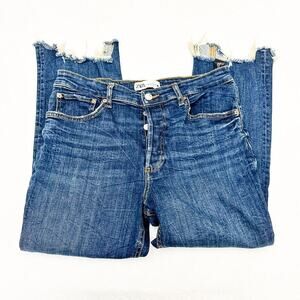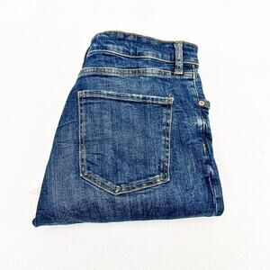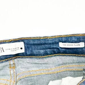 Zara The Dreed Flare Raw Hem Button Fly Med-Dark Wash Denim Jeans Size 12
