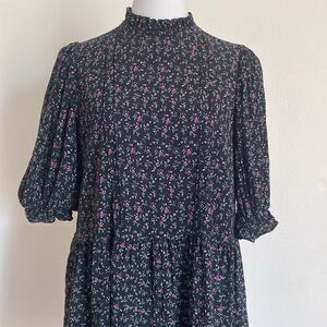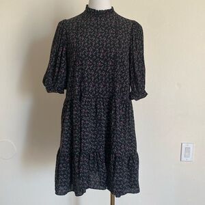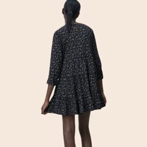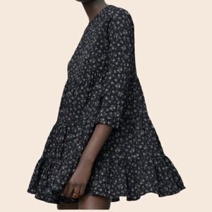 Zara "The Lisa" Black Floral Empire Waist Babydoll Mini Dress Size Extra Small