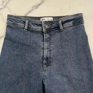 Zara The Marine Straight Jeans Medium Wash Denim Sz 10 Nautical Preppy Boho Chic