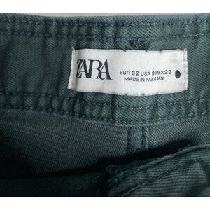 Zara The Marine Straight Pants Wide-leg High-rise Green 0 XS Raw Ham