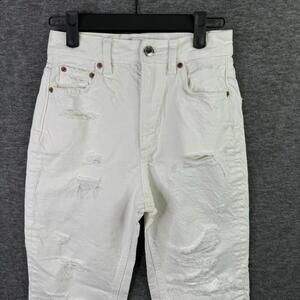 Zara "The Pepper Mom" Womens White Distressed High-Waisted Jeans Size 0 Casual