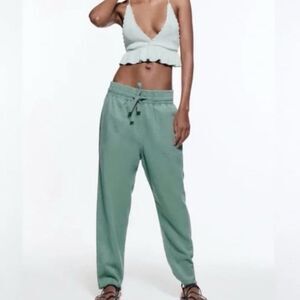 Zara The Raw Hem Jogger Pants in Light Green Size Small