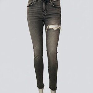 Zara The Skinny Jeans – Gray Distressed Raw Hem Ankle Slit Denim Size 8