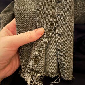 Zara skinny jeans, gray distressed denim, raw hem ankle slit jeans, frayed edge skinny, fall casual denim, ankle detail pants, edgy Zara outfit, slim fit gray jeans