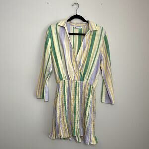 Zara The Valery Pastel Multicolored Striped Smocked Bottom Collared Shirt Dress