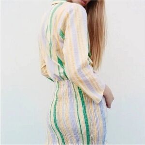 Zara The Valery Smocked Yellow Green Striped Mini Dress S
