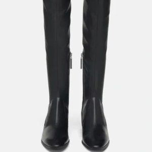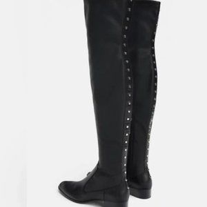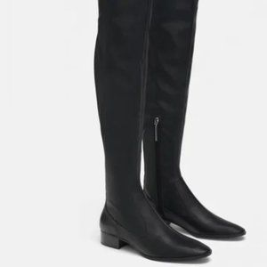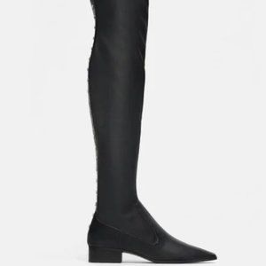 Zara Thigh High Studded Faux Leather Boots Black Low Heel