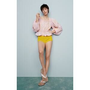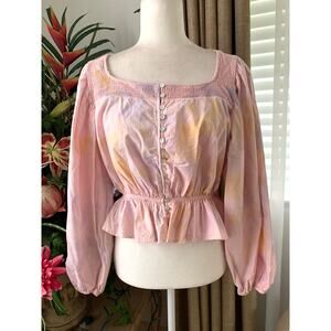 NWT Zara Tie Dye Balloon Sleeve Crop Peplum Blouse in Pink Multi