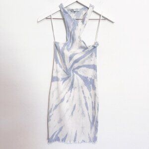 Zara Asymmetrical Straps Tie Dye Sleeveless Ribbed Bodycon Mini Dress Medium
