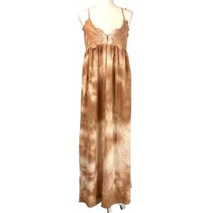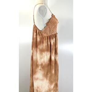 V-NECK MIDI DRESS WITH THIN STRAPS. MATCHING EMBROIDERED APPLIQUÉ DETAIL. DUE TO THE DYEING PROCESS, THE PRINT ON EACH GARMENT IS UNIQUE.