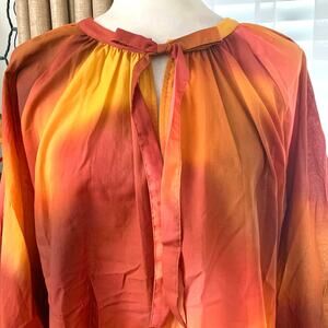 NWT Zara Tie Dye Print Oversized Blouse with Tie in Orange