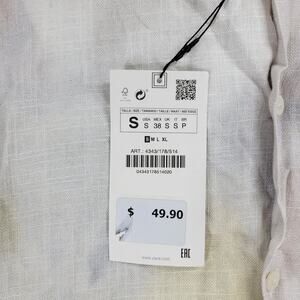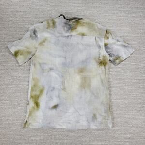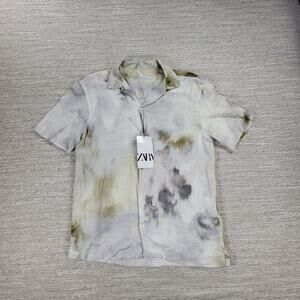 Zara Mens Cream Watercolor Tie Dye Short Sleeve Linen Blend Button Down Viscose Summer Shirt Size Small New