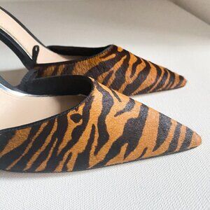 Zara Tiger Stripe Print Ankle Strap Pointy Toe Heels 37