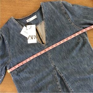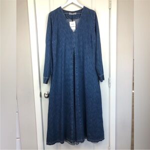 Zara Tilda Denim Vneck, long sleeve, Midi Dress size large