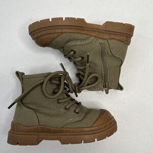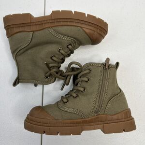Zara Toddler Size 5 Eur 22 Boots Moto Combat Lug Sole Army Green Side Zip Up