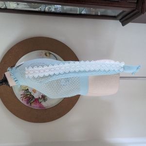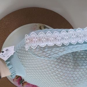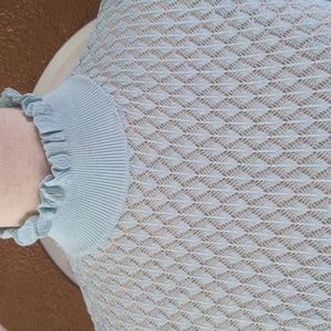 Gorgeous lightweight top with beautiful crochet panels on the sleeves by Zara. The shade is a mint green. See picture 8 for closet color. It is new with tickets.