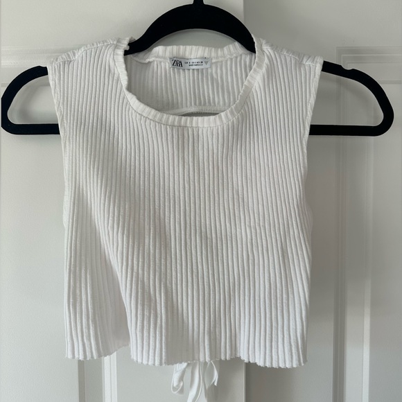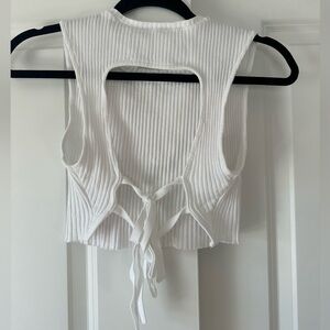 Stylish white ribbed crop top. Sleeveless design. Perfect for any occasion.