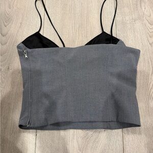 Chic gray camisole with sleek black straps. has some pilling