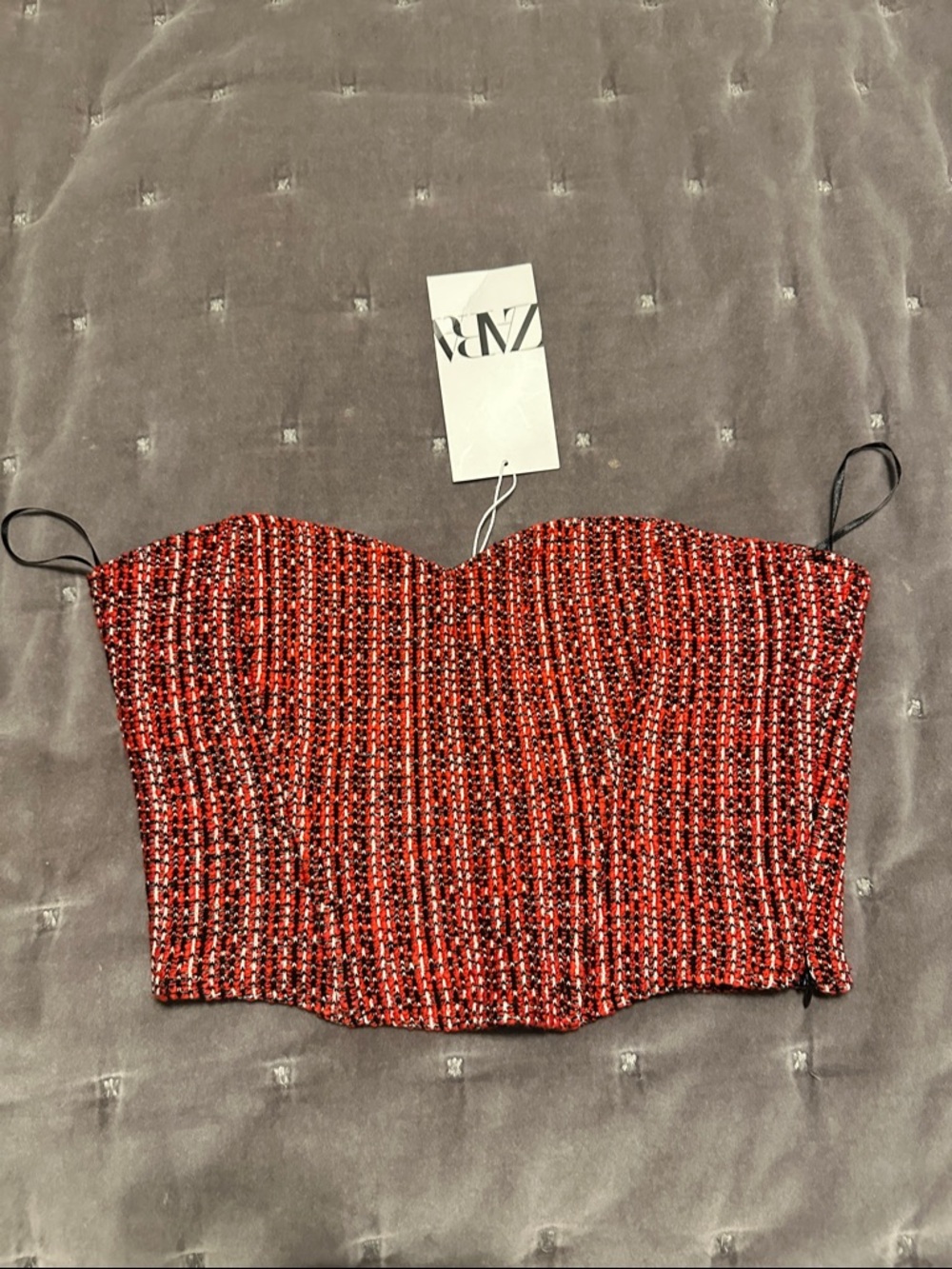Zara Brand Zipper on the side Red Knit Top Size Small New w. Tags