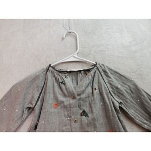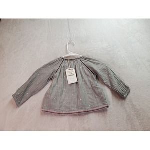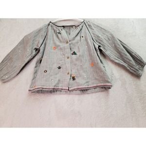 Zara Top Baby 18/24 Months Gray Embroidered Floral Long Sleeve Button Front