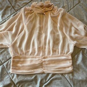 Zara Top Large 3D Pink Chiffon Crop Flower Detail