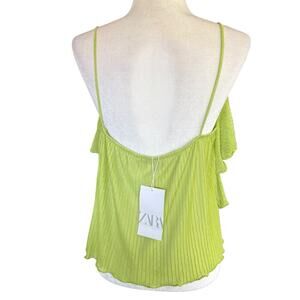 Zara Top Pleated Ruffle Lime Green L Fairy Whimsical Festival Indie Feminine NWT