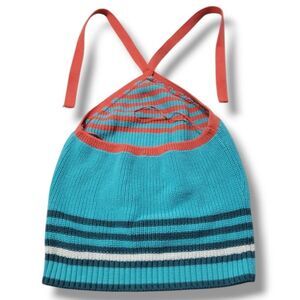Zara Top Size Medium Womens Zara Knit Top Halter Top Crop Top Zara Knit Crop Top Women's Top Women's Halter Top Striped Blue With Multicolor Stripes