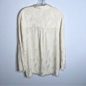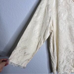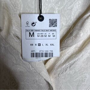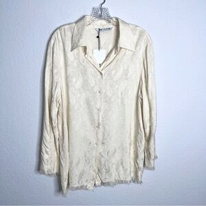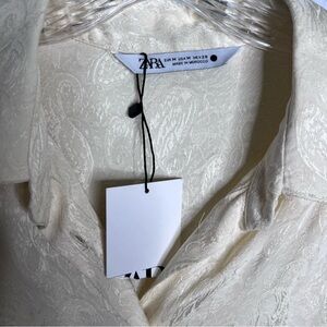 Zara Top Women Medium Shirt Cream Jacquard Paisley Satin Textured Button Up B20