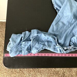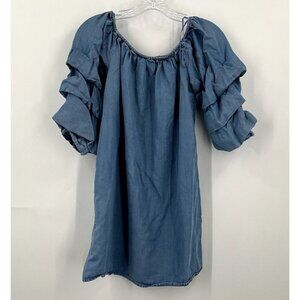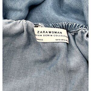 Zara Top Women S Blue Layered Sleeves Off the Shoulders Denim Tunic Peasant