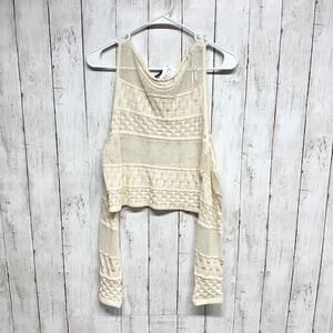 Zara Top Women Size Medium Cream Crochet Cold Shoulder Long Sleeve Crop Blouse