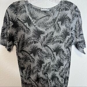 Zara Palm Tree Women Small Gray Black Shirt Top Hi Lo Short sleeve Scoop Neck.
