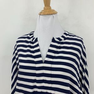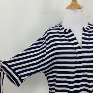 Zara Top Womens L Large Split Neck Stripe Tie Half Sleeve Boxy Cropped Shirt
