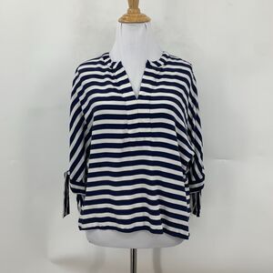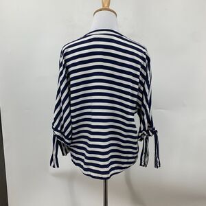ZARA TOP WOMENS L LARGE SPLIT NECK STRIPE TIE HALF SLEEVE BOXY CROPPED SHIRT