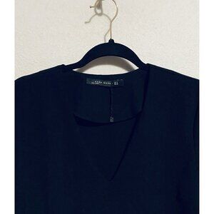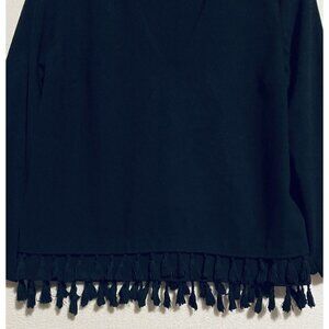 Zara Top Womens Medium Fringe Hem V Neck 3/4 Sleeve Black Minimalist Boho
