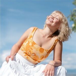 Zara Top Womens Medium Yellow Floral Cropped Retro 70s Funky Boho Fairy Festival