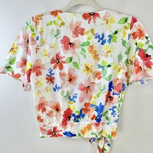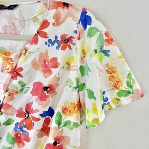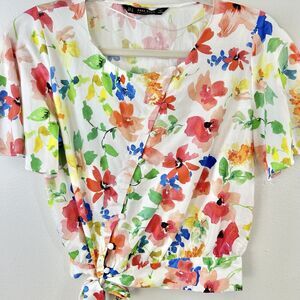 Zara Top Womens S Watercolor Floral Short Flutter Sleeve Hip Tie Crop Summer