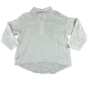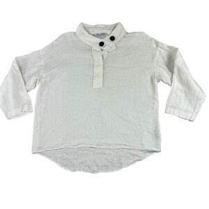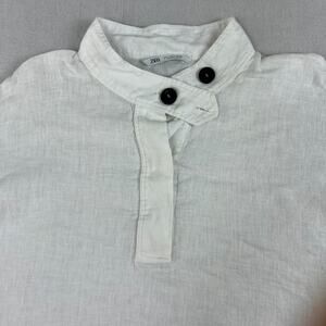 Zara Top Women's Size L White Linen Oversize With Buttoned High Neck