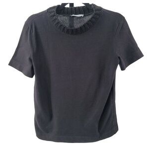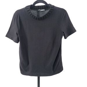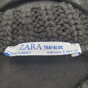 Zara Tracaluc Black Short Sleeve Tops Blouse Scoop Neck Knit Crochet Sweater
