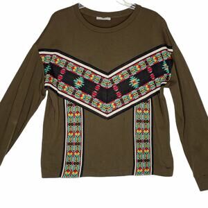 Zara Trafaluc Aztec Trim Oversized Sweatshirt Olive Green US S