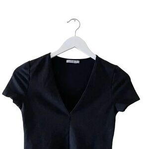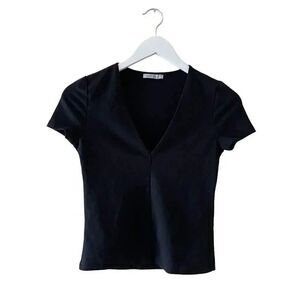 Zara Trafaluc Basic Every Day Black V-Neck Short Sleeves Women’s Blouse S #1709