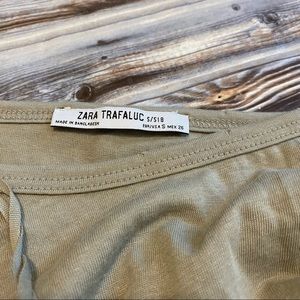 Zara Trafaluc Basic Short Sleeve Jersey Knit Distressed Raw Hem T-Shirt Beige S