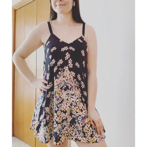 Zara Trafaluc Black & Multicolor Floral Print Mini Slip Dress Small Women’s