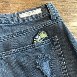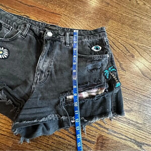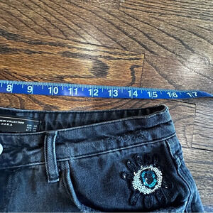 Zara Trafaluc Black Ripped Evil Eye, Palm, Ice Cream Patch Jean Shorts size 8/40