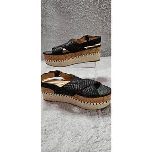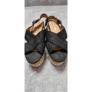 Zara Trafaluc Black Woven Cork Contrast Wedge Platform Sandals 39 8.5 Flatform