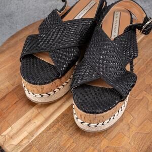 Zara Trafaluc Black Woven Cork Contrast Wedge Platform Sandals Size 37