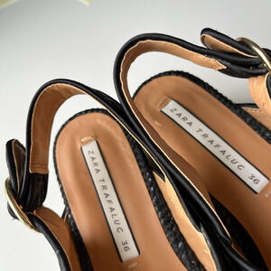 Zara Trafaluc Black Woven Cross Strap Slingback Platform Sandal Womens 36 / US 6