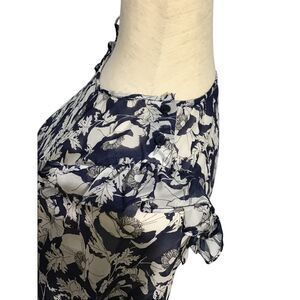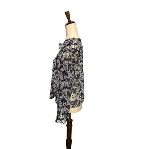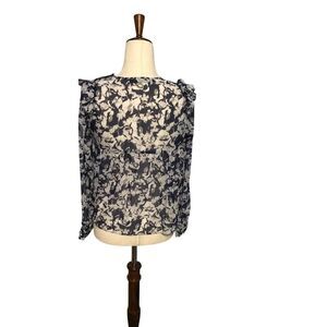 Zara Trafaluc Blue Floral Ruffle Sleeve Sheer Pullover Size 5